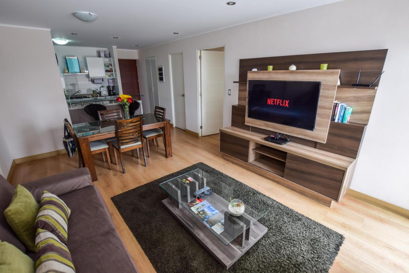Miraflores Apartments 570 Pardo Ave by Private Host ofrece terraza, vistas a la ciudad, zona de estar, TV de pantalla plana por cable, cocina totalmente equipada con nevera y horno, y baño privado con ducha y artÃculos de aseo gratuitos. También hay microondas, fogones y tostadora, además de cafetera y hervidor.